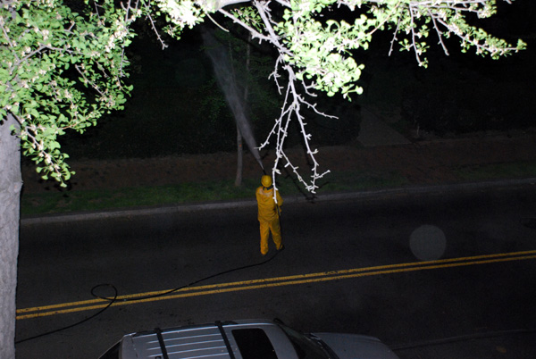 By the way, it appears that this sign is not telling us that we can’t park here. There’s an ‘X’ over the “Emergency No Parking” on all the signs. In the past when they sprayed, the city used different signs that essentially said “Watch out, your car is going to get covered in some weird spray. Move it if you feel like avoiding that.” GM guesses they tossed all those signs last year when they thought the vitamin C idea was going to work perfectly. So residents, GM doesn’t think you have to move your car if you don’t want to, and with hoards of people driving to Georgetown this weekend, it’s probably a good idea to leave your car where it is.
