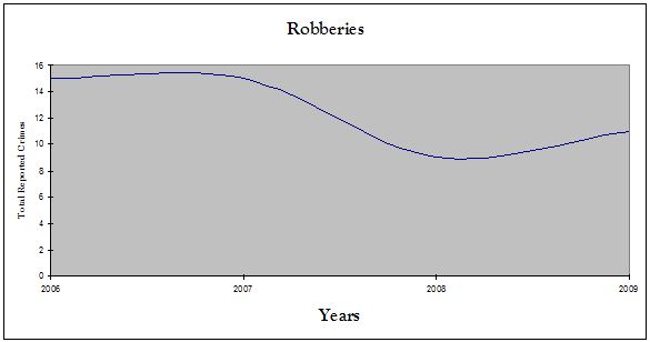 Robberies, on the other hand, are up slightly from last year but are still low compared to 2006 and 2007: