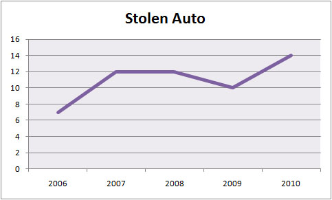 There is some good news. In a couple categories we recorded record lows. Those included thefts from autos (28, down from an average of 48) and burglaries (18, down from an average of 23). Moreover, we only had one sexual assault (which is about average) and thankfully we haven’t suffered a homicide since 2006.