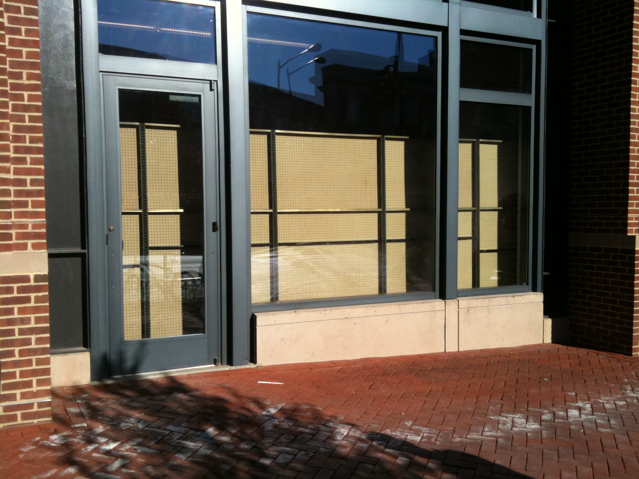 As you can see from the shot on the top and the one above, the store covers up two large picture windows with interior walls, which are used to hang goods for sale. This increases the amount of usable space for the store, but it is terrible for sidewalk.