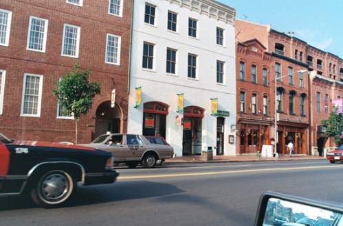 This week on Not So Long Ago, GM heads to the heart of Georgetown: Wisconsin and M. And there’s is only one difference on this block from 1993 till today, but it’s a significant one: where the fancy BCBGMaxazria now is, a Burger King once stood.