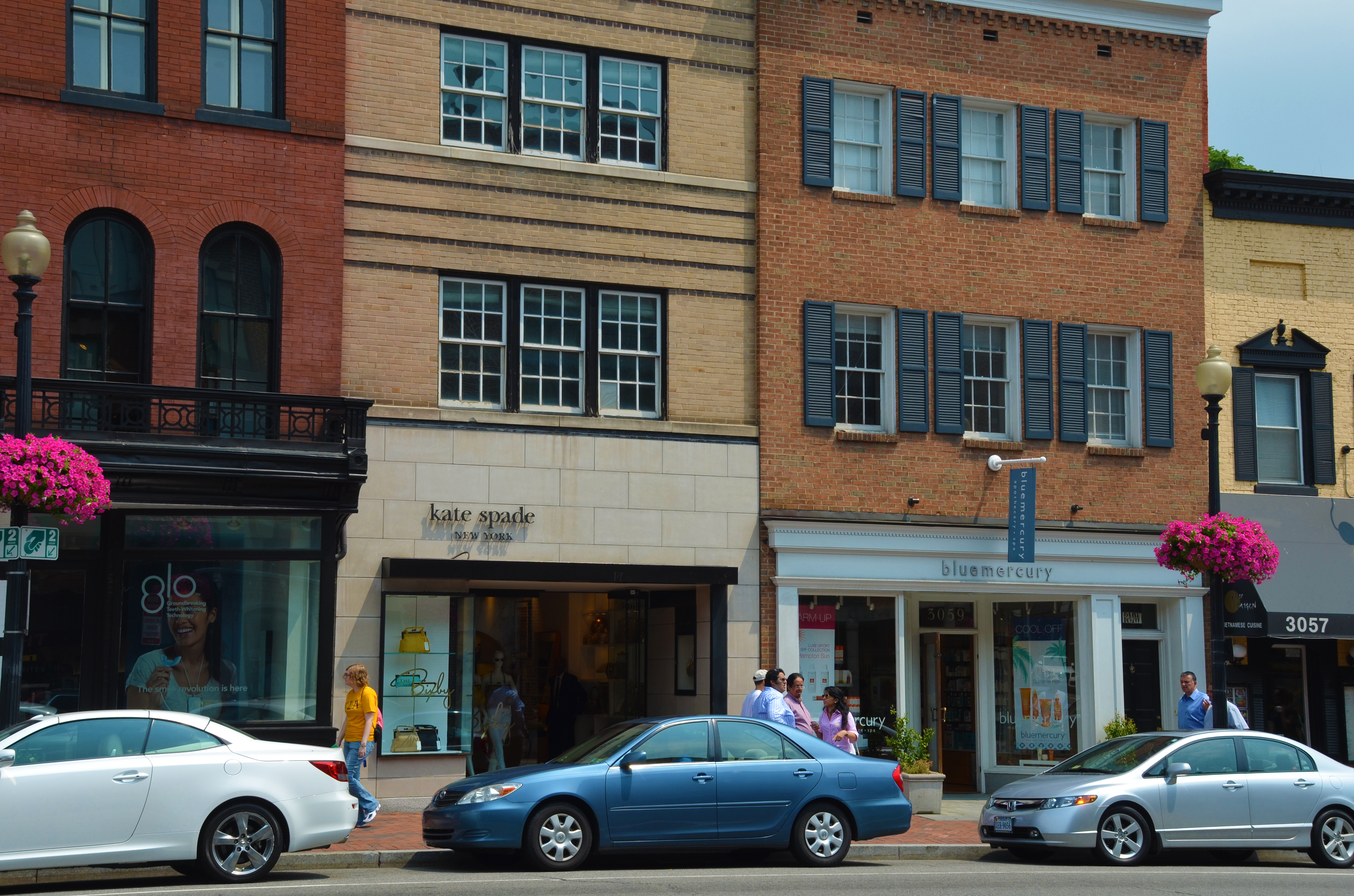 This week on Not So Long Ago, GM stops by M and Thomas Jefferson Streets. Today on the north side of the street there is Sephora, a cosmetics store, Kate Spade, a handbag and apparel store, and Blue Mercury, another cosmetics store. These are square in the middle of the young-women-shopping market that has steadily grown in Georgetown over the years.