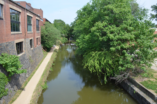 Also, the photo is labeled “C & O Canal from Wisconsin Ave.”. But it doesn’t really look that much like the view from Wisconsin Ave. in either direction. GM guessed that if it’s either one, it’s the east side, so that’s what he matched it up with. Anyone have a better guess?