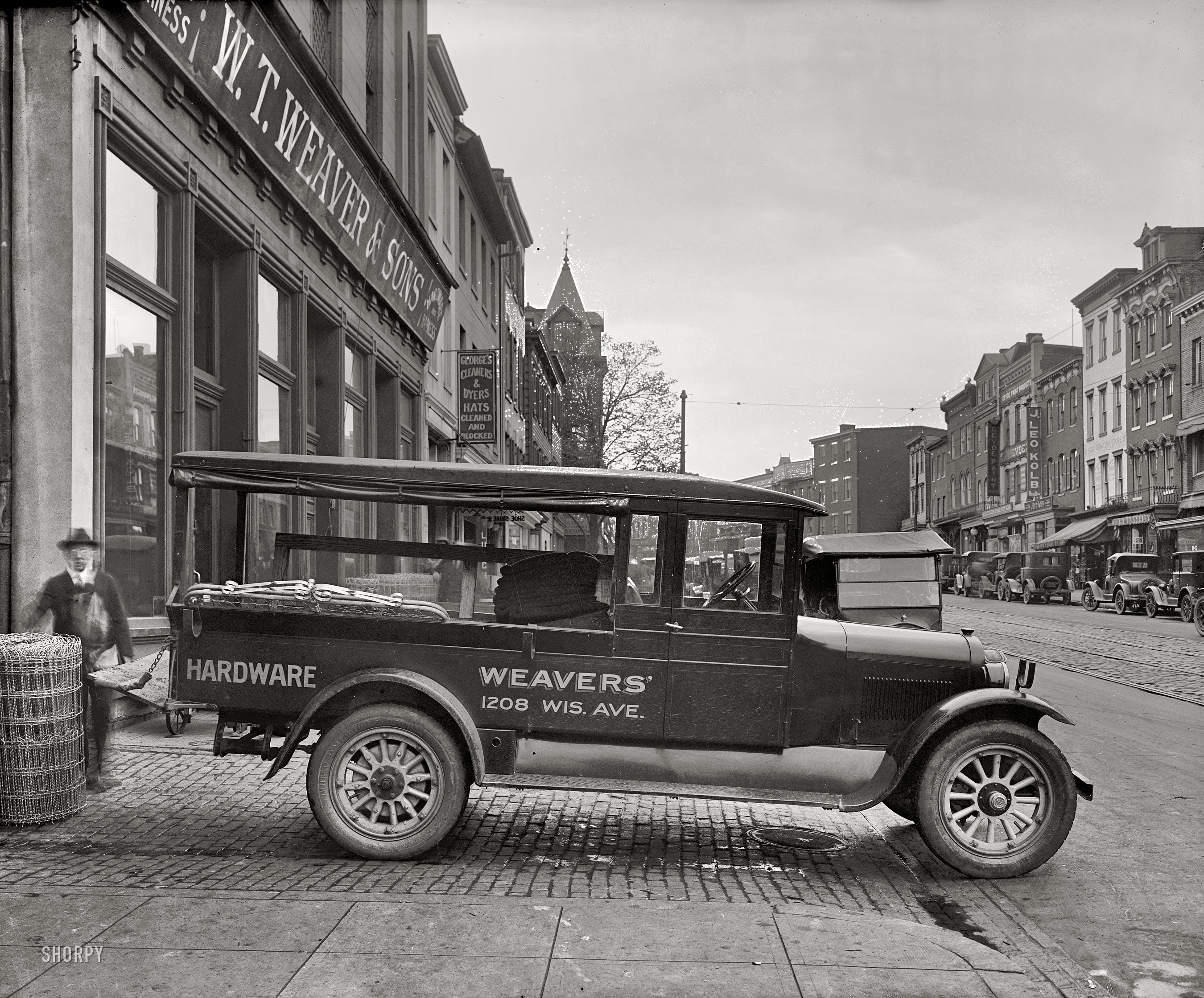 That store is W. T. Weaver and Sons Hardware. This is a store that GM has already profiled on Not So Long Ago when he compared the current facade with how it stood in 1993. Today, GM goes back a lot further. This photo is from 1926.