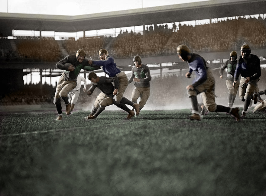 This week in Old Georgetown in Color, GM tries his hand at some old Hoyas again. This time it’s the Hoya football team. The year in 1923, and the scene old Griffith Stadium. Georgetown played the Marines of Quantico (Quantico fielded a football team from 1919 till 1973).