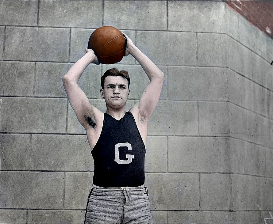 This week in Old Georgetown in Color, GM sticks with the Hoya theme (it’s easier to find good old black and white photos of them). The grim fellow above is Bill Hudack. He’s shown here in 1921, the year he captained the squad to a respectable 10-4 record. He was head coach in 1929-30 and found slightly less success, managing a 13-12 record.