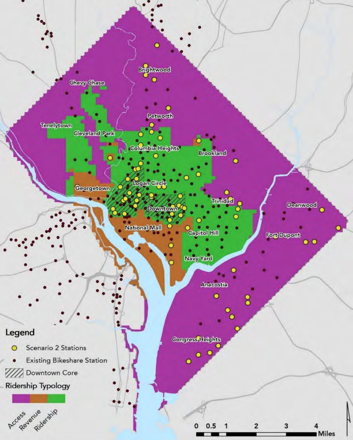 One final note: DDOt splits DC neighborhoods into three categories for this report: High Ridership, High Revenue, and Accessibility. High Ridership neighborhoods are neighborhoods with high ridership but with low revenue generation because most of the trips are under 30 minutes (and thus free). High Revenue Neighborhoods not surprisingly are neighborhoods that generate lots of trips over the 30 minute grace period. Accessibility is a euphemism for neighborhoods that don’t generate many trips at all (and hence expansion is more about providing accessibility to the people that live there). Georgetown is a High Revenue neighborhood: