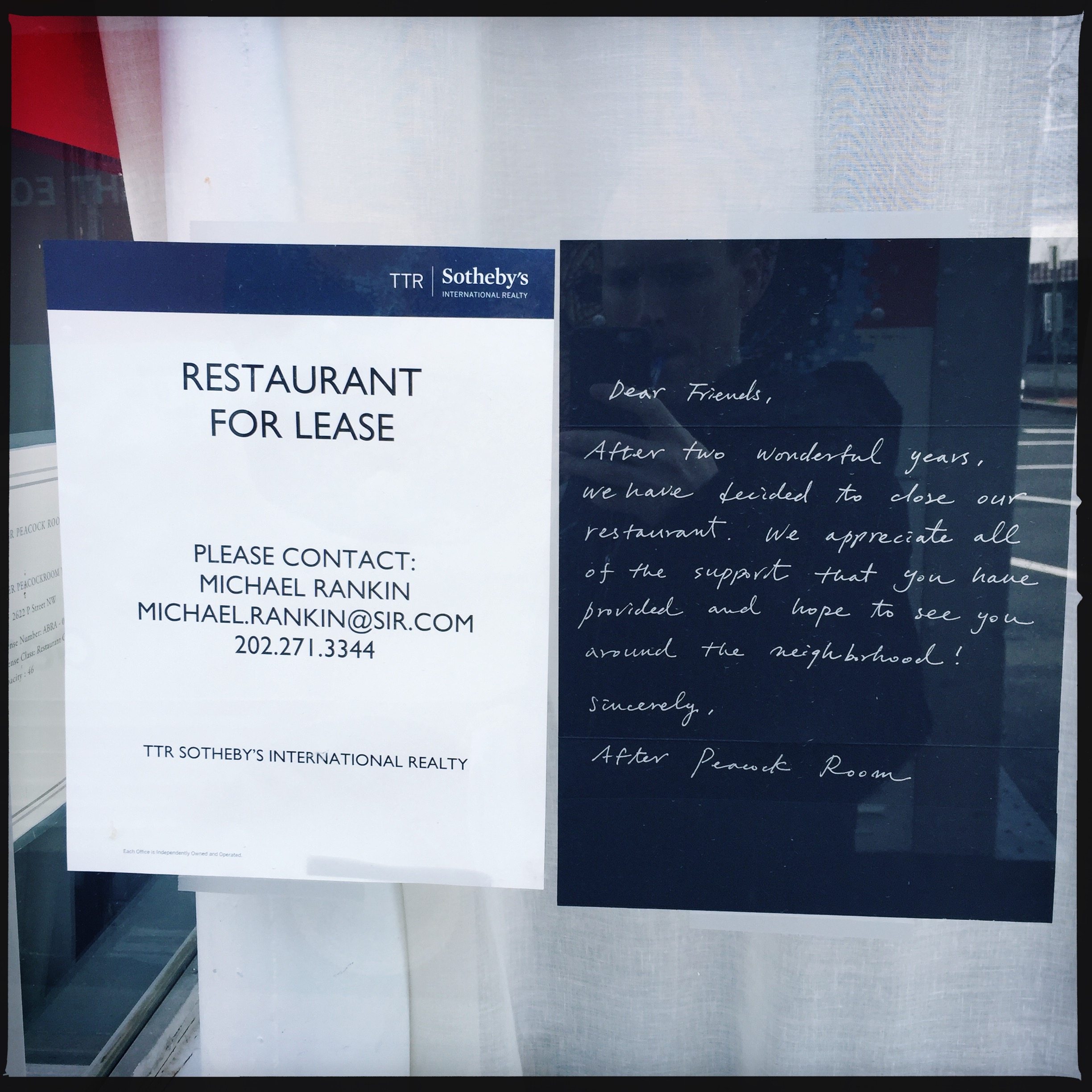 It was always going to be a challenge to run a successful restaurant on P St. far from the commercial corridors. So it should not come as a surprise that the After Peacock Room has recently folded. Unlike previous closures, this one is permanent.