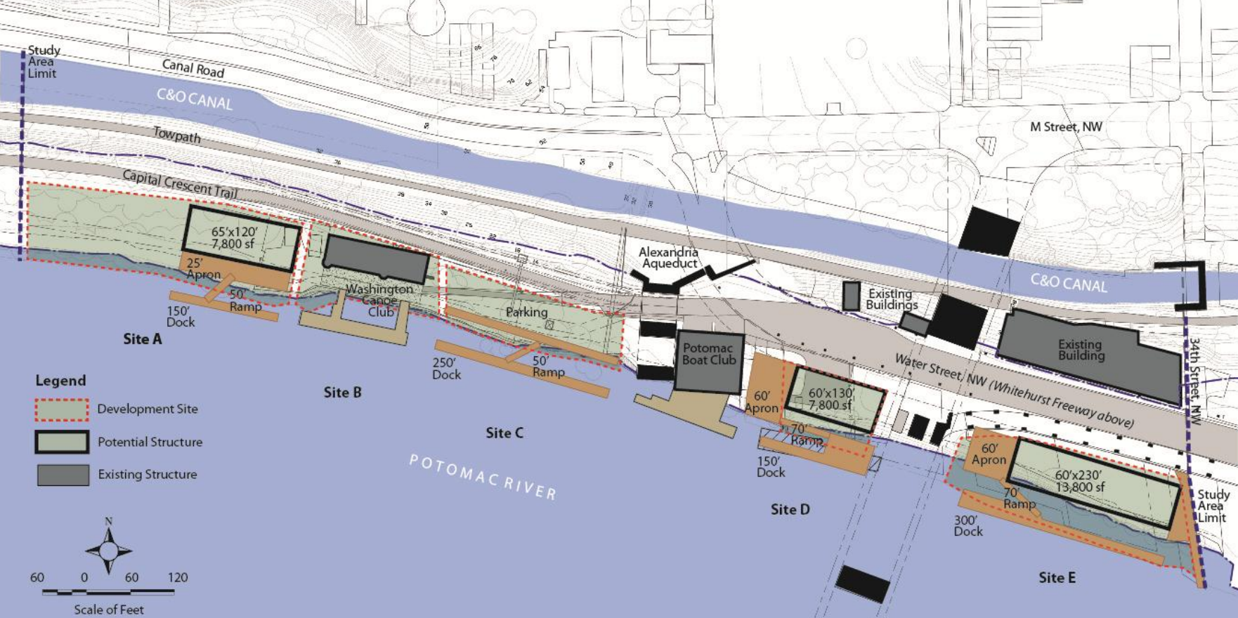 That effort itself was the product of an even older report that GM has discussed before: the 1987 masterplan for the Georgetown waterfront. Included in this plan was the construction of the waterfront park, the creation of the Capital Crescent Trail, and the creation of Francis Scott Key Park. The plan also was the first to put forward the idea of a “non-motorized boat zone” for this section of the river, along with the construction of new boathouses.