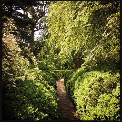 Dumbarton Oaks in late May is not exactly at its peak in terms of blooms. The wisteria flowers are faded, the cherries and magnolias long gone, but the greenery is pretty great. And the peonies and roses are blooming.