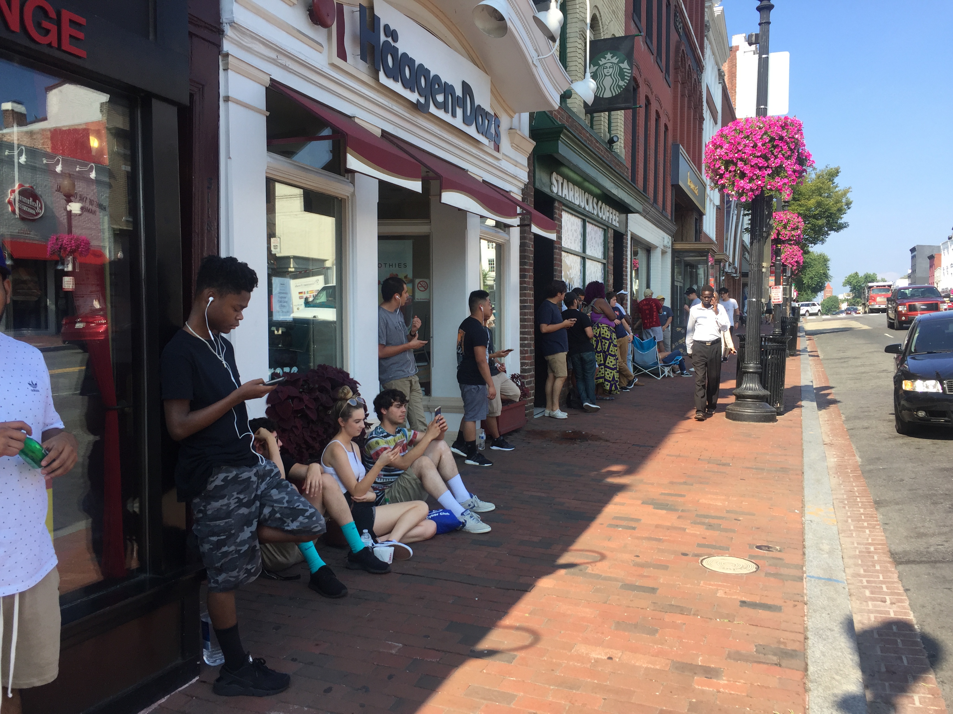 The line wrapped all the way from about 30th to 31st. A few minutes later, the line stretched down 31st.