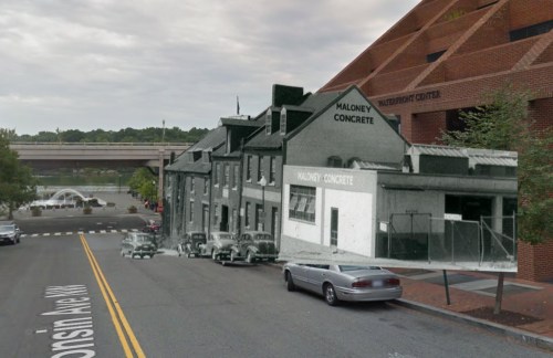 It’s not so different from how it looks today, honestly. The first three of the four buildings show are still around. The center one is called the Dodge Warehouse, but all three are fantastic examples of the commerce-oriented architecture that once dominated lower Georgetown.