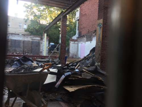 If you peak through the paper blocking the windows, you’ll see the scene above. Some of the structure remains, but not much.
