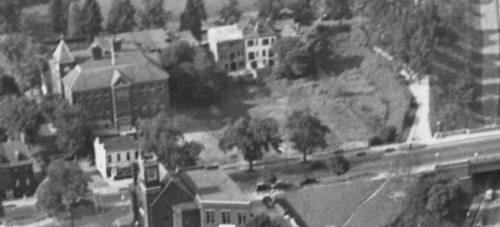 You can see the Peck Memorial Presbyterian chapel between M and Pennsylvania. It was demolished just a few years later in 1951 (what a nice large tree–possibly American Elm–there was on the triangle across 28th):