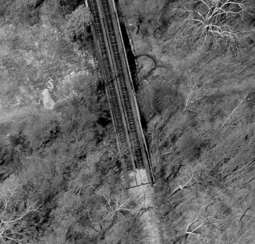 You can’t see it in the photo, but just below the shot would have been a view of the tracks crossing above the gorge where cars would drive up to the campus. The larger west abutment of that bridge is still there and is what is prominently painted “HOYA SAXA”.