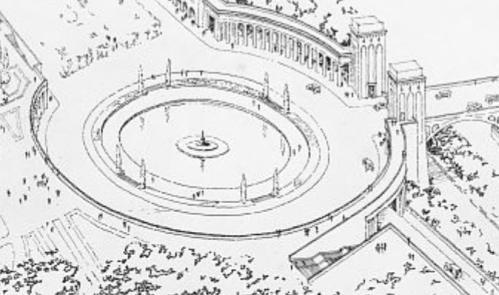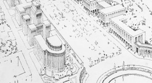 The two additional renderings show more of what the new streetscape would look like. And it’s 100% straight from the City Beautiful playbook. It would call for a grand new boulevard lined with dramatic new civic buildings. Here’s some closer looks: