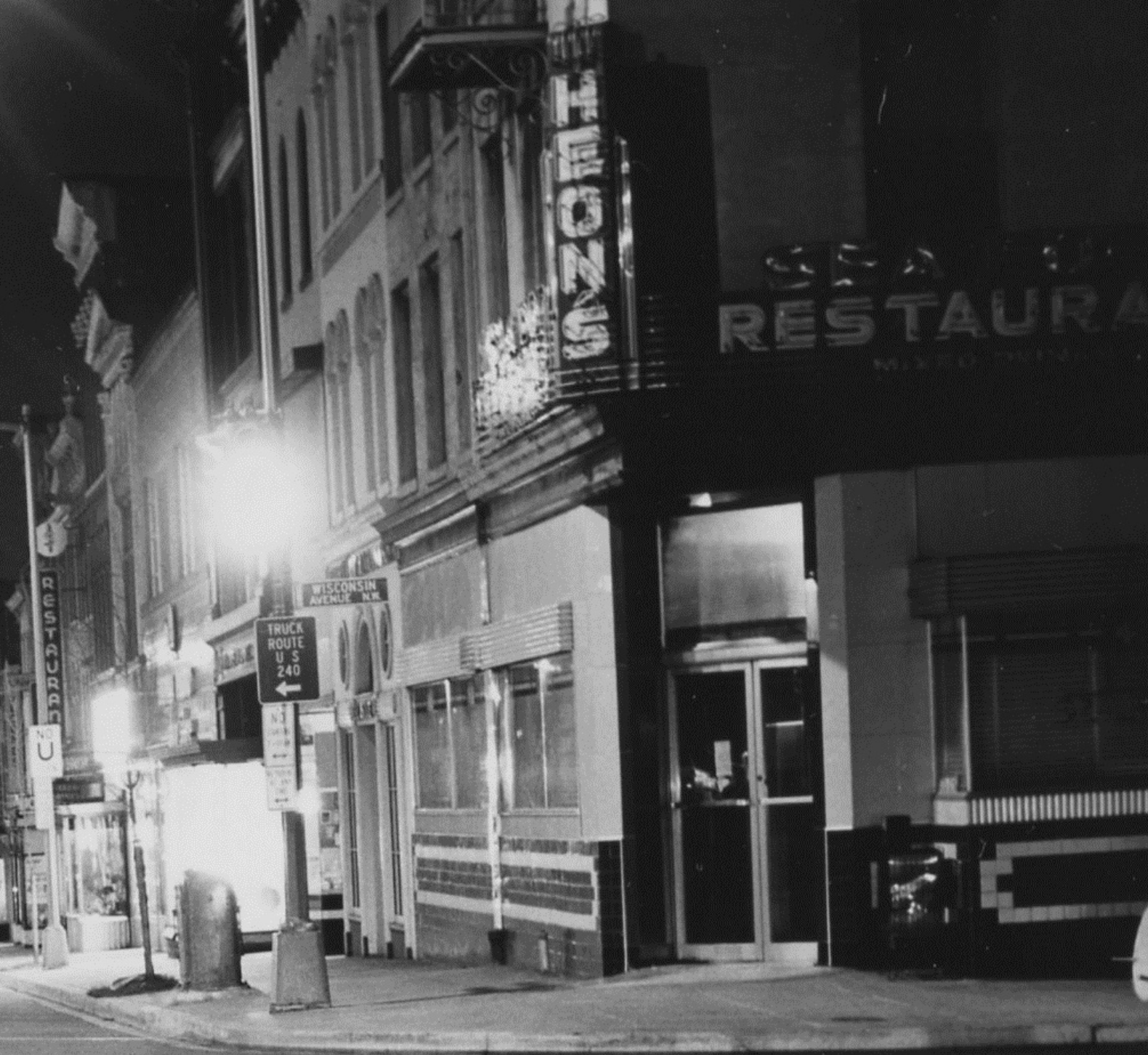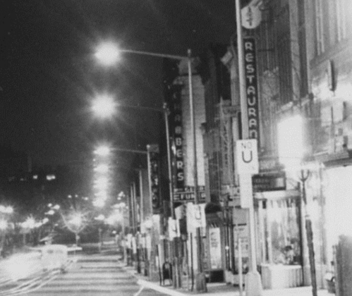 It’s not clear exactly when this photo was taken, but it’s similar to other photos of a dark empty M St. that are dated to 1959. And that sounds correct.