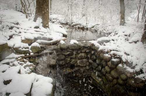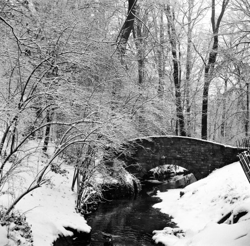 In his venture around with his camera, GM was struck by one big difference in Dumbarton Oaks Park (the best place to enjoy snow in Georgetown). In 2005, he took this photo of the stone bridge: