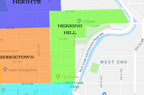 Herring Hill is far eastern Georgetown, basically 29th St. to Rock Creek. Cultural DC has a nice explanation of the name and the history of this quarter: