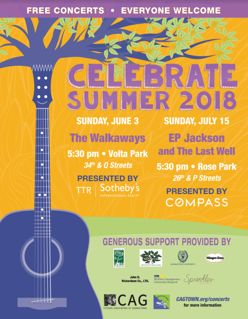 The fabulous Concerts in the Park will be returning next month, June 3rd, in Volta Park. The second will follow on July 15th in Rose Park. (They are scaling it back from three concerts this year). Also, Via Umbria is offering special picnic basket dinners for the concerts, which you can order here.