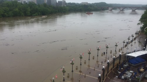 The Potomac river is flooding. After basically an entire week of rain, the engorged river is bursting at the seams. Here in Georgetown that means mostly that the Washington Harbour complex is getting flooded. By the middle of the week all this water will be out to sea and the levels will be moving back down to normal. While impressive, it ultimately will not compare to some of the historic floods Georgetown’s had in the past.