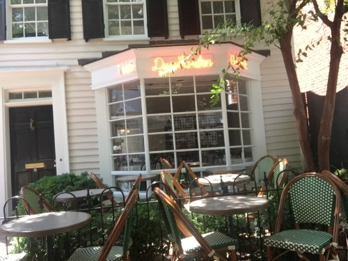 Above you’ll see a the lovely outdoor restaurant called the Dumbarton Cafe. It was located (very temporarily) at 3214 O St., a vacant space the previously held a pilates studio. They even had a sandwich board with 80’s prices: