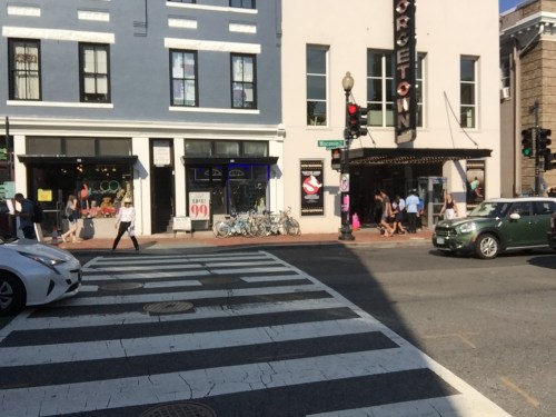 Down the block, several stores on Wisconsin got a makeover. The historic Georgetown Theater was transformed into, well, a theater, with posters for Ghostbusters and Footloose (both accurate for the 1984 setting), and a box office: