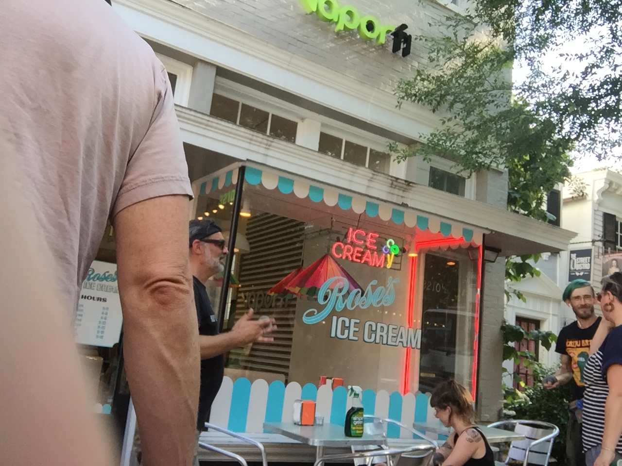 Above you’ll see a the lovely outdoor restaurant called the Dumbarton Cafe. It was located (very temporarily) at 3214 O St., a vacant space the previously held a pilates studio. They even had a sandwich board with 80’s prices: