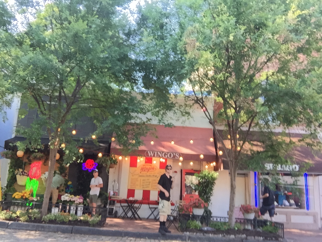 Wingo’s (which suffered a severe fire days before shooting) was given a retro sign. The English Rose, next door, was given a bunch of flowers for the sidewalk.