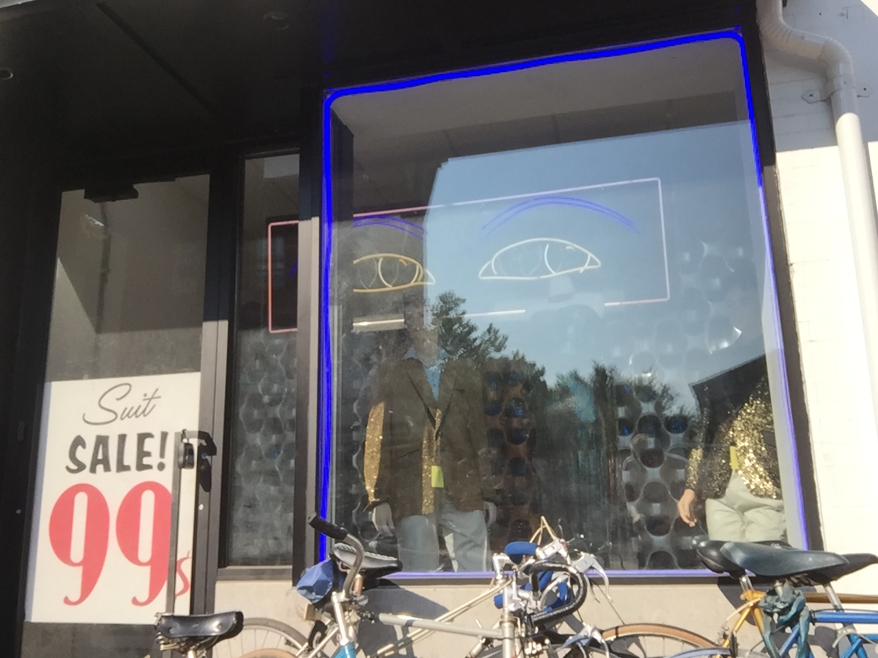 GM thought it was especially funny that next door to the theater they recreated one of the old cheap suit shops that dominated this block since the early 80s up until fairly recently: