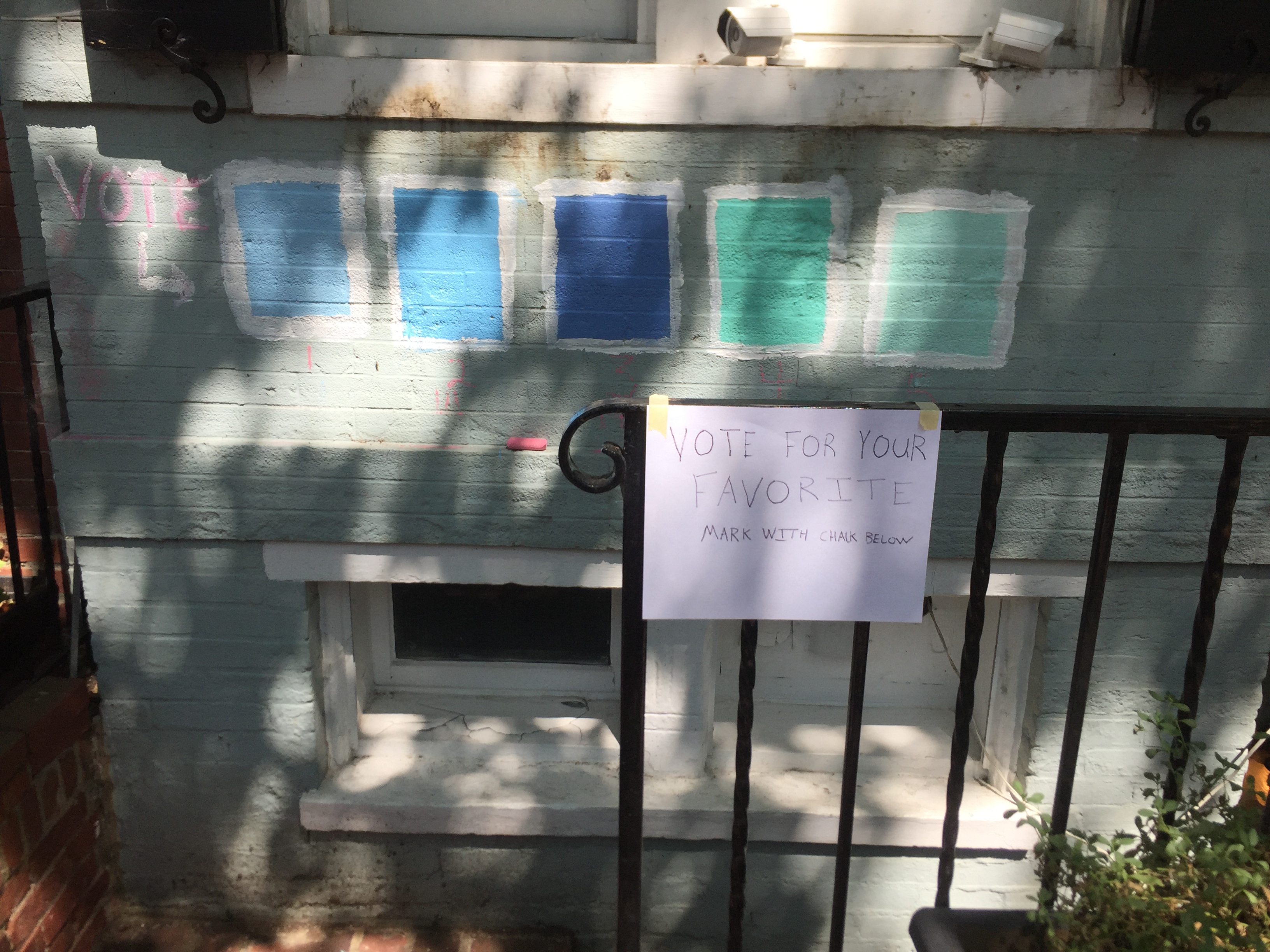 GM and family are having their house painted in a couple weeks. But a final paint color hasn’t been picked yet. There are five candidates, which have been painted in squares on the front of the house. Taking an idea from a neighbor several blocks south, GM is opening it up to crowd sourcing.