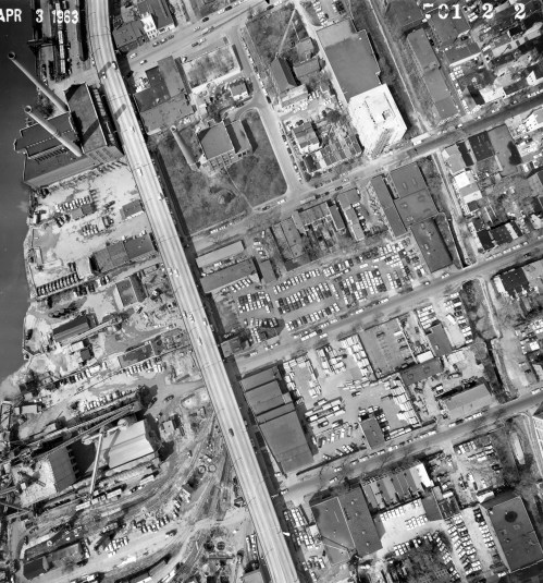 This week for Georgetown Time Machine, GM is checking out an aerial shot from DDOT’s archives. It’s from over lower Georgetown and it was taken April 3, 1963. Check out some of the cool details below: