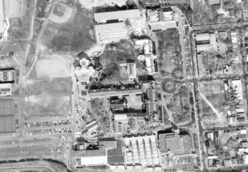 The aerial shot was taken after 1979. The evidence: I see evidence of GU’s Yates Center, built under the football field and complet4ed that year. Also, the L:auinger Library, completed in 1970, and other dorm buildings built in the 70s. As an alumnus, I agree, GU ruined their campus.