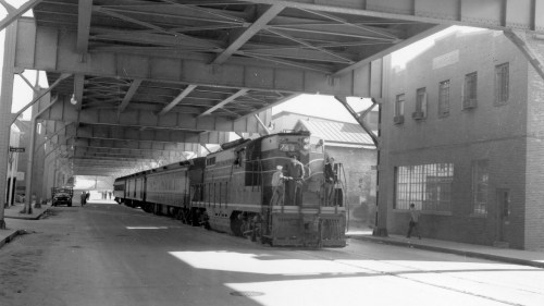 It is from Oct. 24, 1954. It is from a railfan excursion run from Georgetown up around to Silver Spring. As you can see, the locomotive is towing passenger cars, which would be a rare sight. While the branch was originally intended to carry passenger traffic ultimately across the river, the railroad company secured access to another route before the branch was even finished construction in 1910. So the line was instead used exclusively for freight. By the end of its use, it was primarily supplying coal to the West Heating Plant. When the plant shifted to gas, the freight line lost its last purpose and was shut down in 1985.