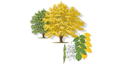 The yellowwood is a medium to large deciduous and flowering shade tree. The leaves are a bit like hickory leaves in that they are single lobed leaves coming of a common branch:
