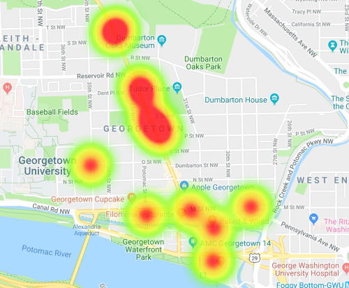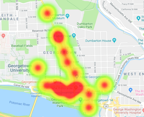 Here is a heat map showing coffee shops in Georgetown in 2010: