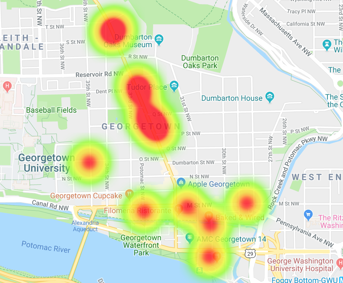 Here is a heat map showing coffee shops in Georgetown in 2010: