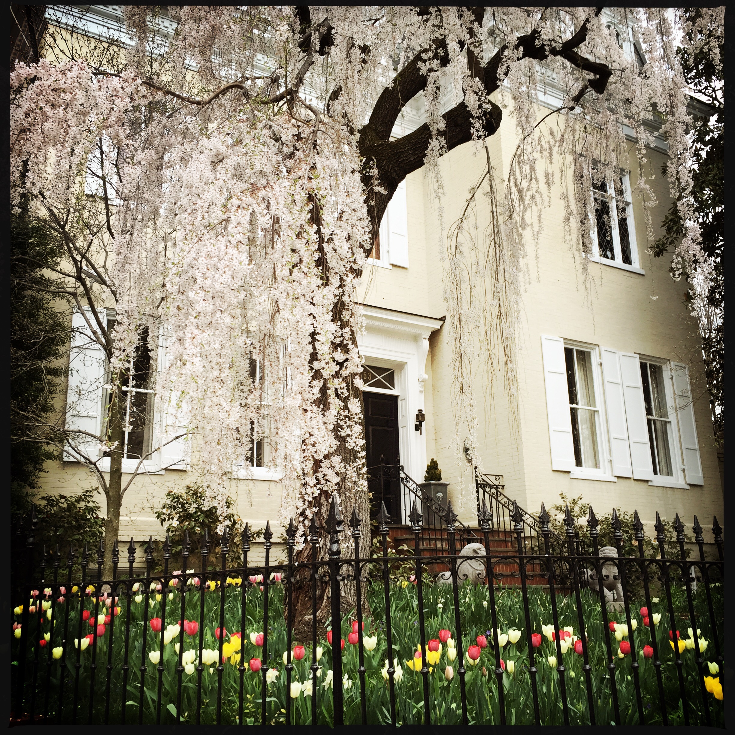 Yoshino cherries can grow quite large for a flowering tree. They can grow over forty feet tall. Dumbarton Oaks has one of the best large Yoshino cherry groves in the city. Over the past week (and maybe even as late as today) visitors have come, sprawled on the grass, and luxuriated in the gentle snowfall of spent blossoms.