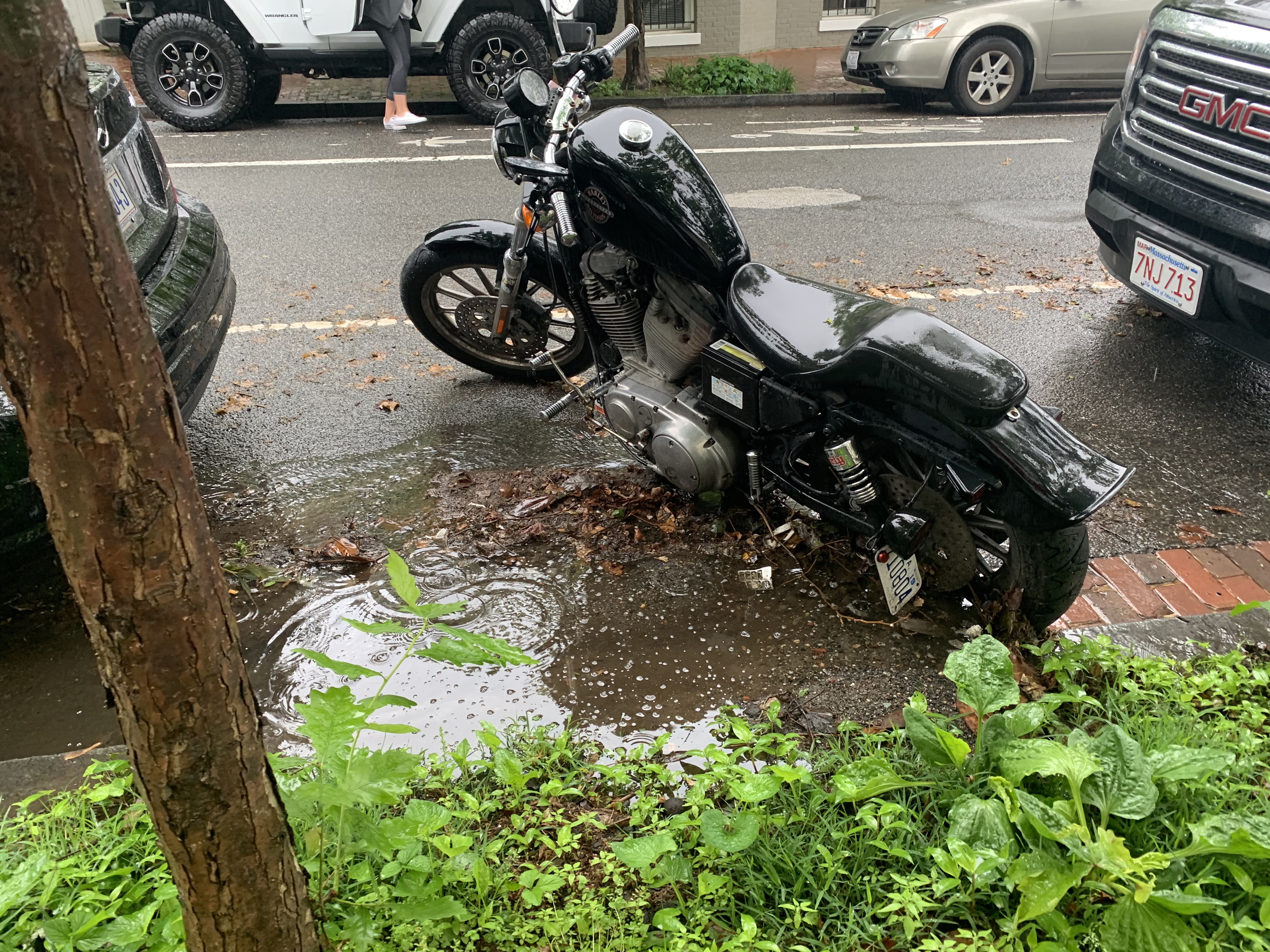 This probably didn’t cause any serious issues, but with a heavier rain it could. So be careful when you’re parking! Make sure to leave a little more room between your tires and the curb. The residents next to your car or motorcycle would surely appreciate not getting the sidewalk flooded, which could lead to house flooding.