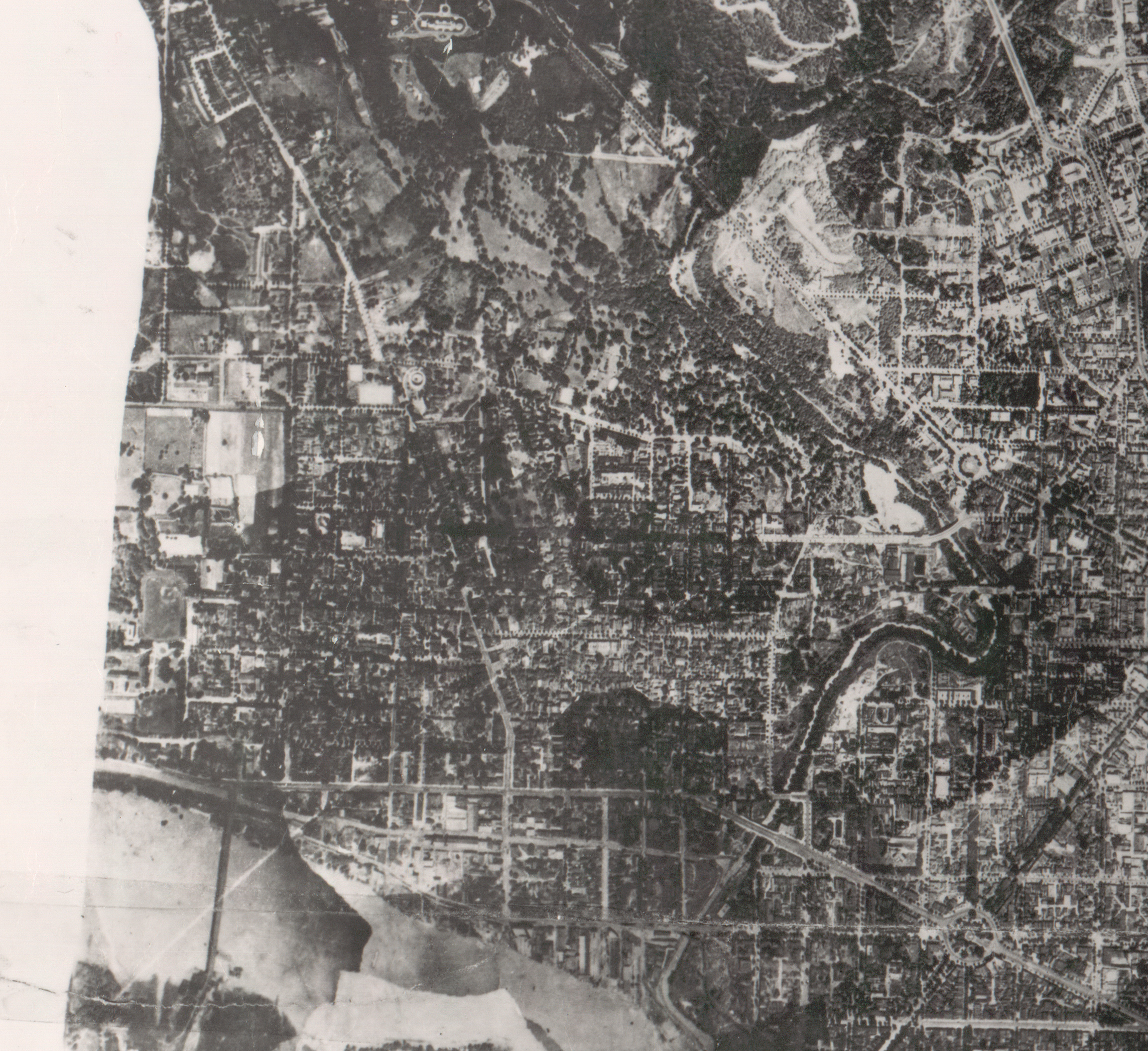 One of the clearer sights is of the old aqueduct bridge, which stood for another 15 years before being demolished after being replace by the Key Bridge. (Ignore the white diagonal line, that is just a remnant from splicing the multiple aerial photos together).