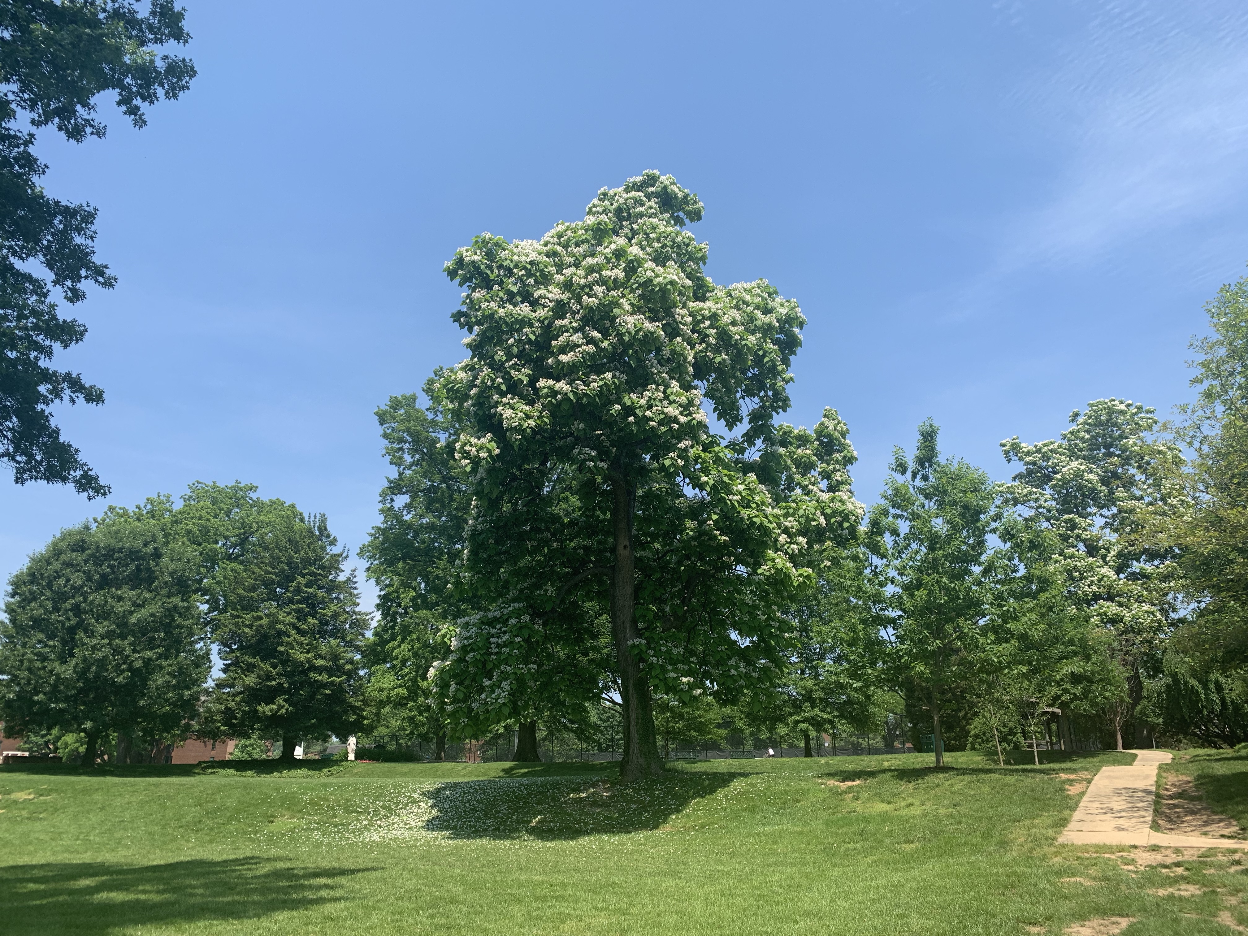 This week for Know Your Trees, GM is exploring the catalpa. While the city’s records indicate that there is only a single catalpa in Georgetown (on 28th across the street from Evermay) there are actually a handful of beautiful catalpas on the campus of Georgetown Visitation (just down the hill from the tennis courts). They are in bloom right now and are quite a sight.