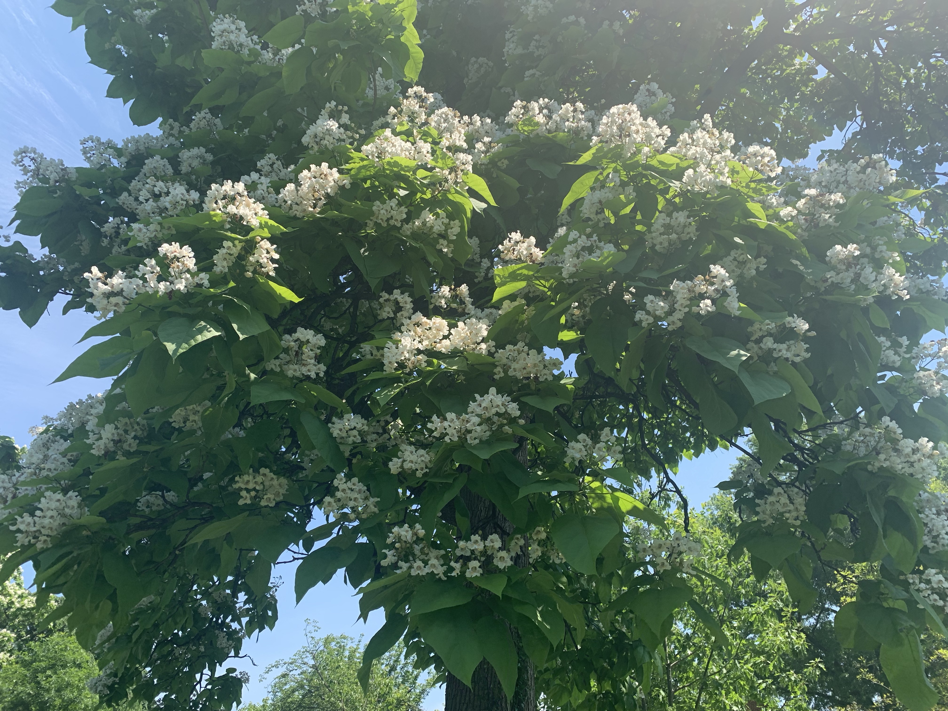 Catalpas come in two varieties: southern and northern. Both are indigenous to the United States, with the northern being native to the Ohio and Mississippi river valleys in the midwest, and the southern being native to the deep south. The northern catalpas tend to be bigger and have leaves with longer points. They’re not very easy to distinguish though. (The catalpa on 28th St. is identified as a southern catalpa, for the record).