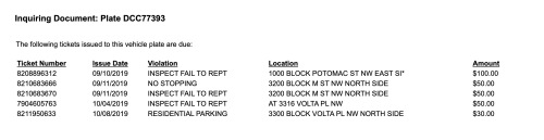 While the van’s grasp on Volta Place remains, the tickets continue to pile up (although not as much as you’d expect):