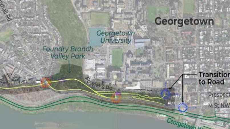 The DC Department of Transportation released the results of its feasibility study into the construction of a pedestrian/bike trail between Georgetown and the Palisades. It ultimately recommends the construction of the trail and also recommends repurposing the Foundry Branch Trestle Bridge for the eastern end of the trail.