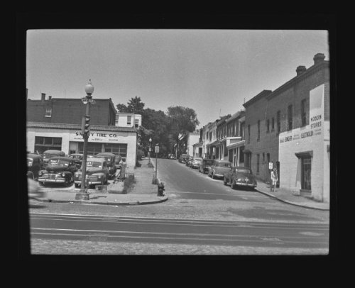 The photo above is looking north from this intersection up 33rd St. It’s from John Wymer photo collection (housed at the DC Historical Society). GM has discussed this collection before. It was created by Wymer as he wandered around the city around 1950. This particular photo is from July 1, 1950.
