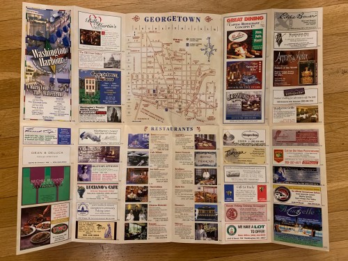 The funny thing to GM is how hard the brochure was leaning into schmaltzy history, in a real Ye Olde Georgetowne, sort of way.The neighborhood businesses (by way of the BID now) obviously still put history front and center, but perhaps out of a fear of seeming too musty, it doesn’t make it so old timey.