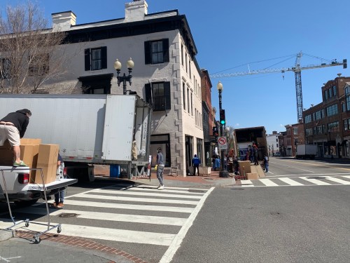 Speaking of unloading, the Brooks Brothers looks like its straight up closing this location. The sign is down and crews were taking everything out (and not practicing social distancing):