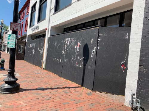 Facing extended store closures, shops around Georgetown have started to get boarded up. This is part of a larger trend seen around DC, and and other cities. It would appear the owners are afraid of looters, but it sure seems like an overreaction to GM.