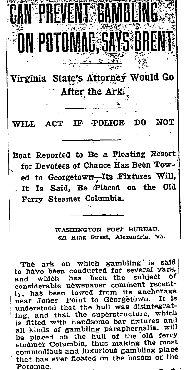 It’s unclear who was ultimately found at fault, but this apparently was hardly the end for the steamship Columbia. Nine years later, the Columbia’s hull was used for a steamboat gambling operation: