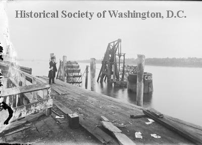 The archive states merely that it is of the “side-wheeler steamboat “Columbia” after sinking at dock on the Georgetown Waterfront.” A little digging by GM reveals that this mishap occurred September 6, 1897. It was the subject of an inquiry at the Georgetown customs house (now our post office) several weeks later, as reported by the Washington Post: